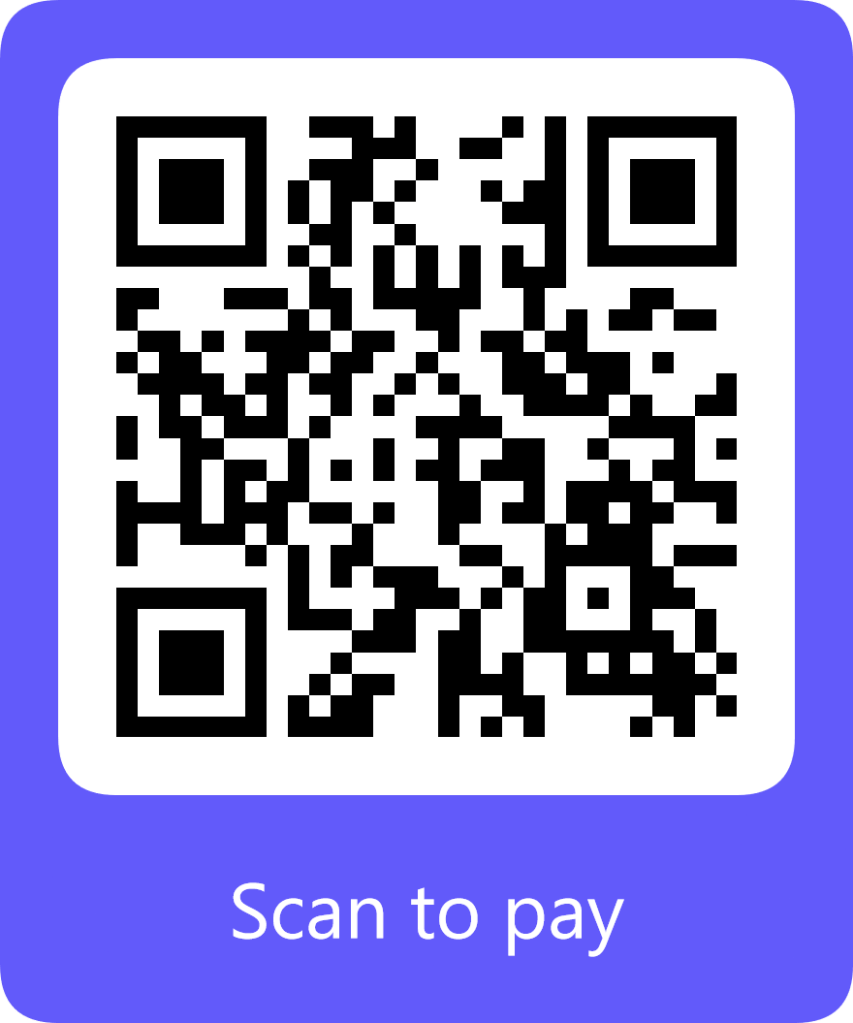 Donate now (click on “Stripe”) Stripe (Visa, Mastercard, American Express, Discover, debit, bank account). The QR code is: